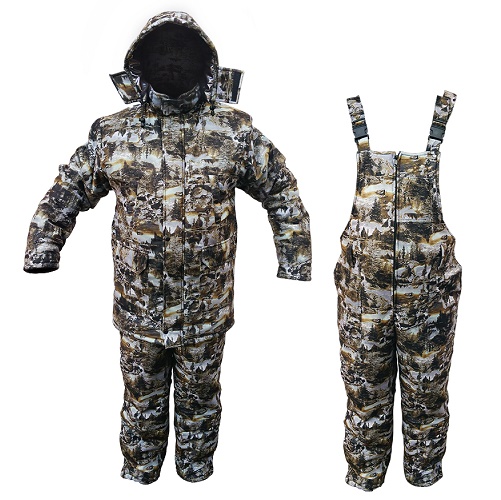 Костюм с подкладкой Taffeta Omni-Heat, состоит из куртки и высокого полукомбинезона, для использования рыболовами, охотниками, т.к. ткань не шуршит. Температурный режим до -30С. Ткань верха - мембрана - пароотводящая, непромокаемая. Подкладка Taffeta Omni-Heat, Технология температурной регуляции Omni-Heat отражает и сохраняет собственное тепло человека на 20% больше, отражая его с помощью серебристых точек, и в тоже время отводит излишнее тепло и влагу. Утеплитель - полое внутри волокно термофайбер плотностью 300 грамм на кв.метр. Куртка с утяжкой на талии, на двухзамковой молнии с ветрозащитной планкой, имеет 2 больших внешних кармана на талии, а также 2 прорезных кармана на груди (на кнопке) и 1 внутренний карман. На рукавах есть внутренняя манжета. Капюшон пристёгивается кнопками, имеет утяжку и защитный клапан на липучке. Полукомбинезон на молнии. 2 кармана на бёдрах, 1 карман на липучке расположен на груди. Внизу полукомбинезона имеется расширение на молнии.